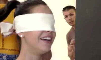 My virgin stepdaughter sucks a dick for the first time, threesome with my wifey double cum on her uber-sexy innocent face