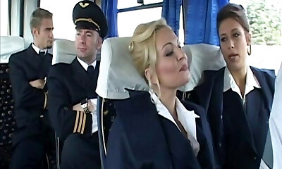 Sexy stewardess decided to have orgy before the end of the flight