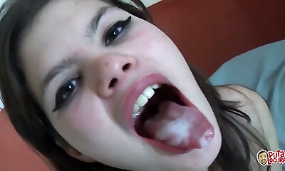 Kinky girlfriend with pierced tongue gets her throat fuck-hole filled with cum